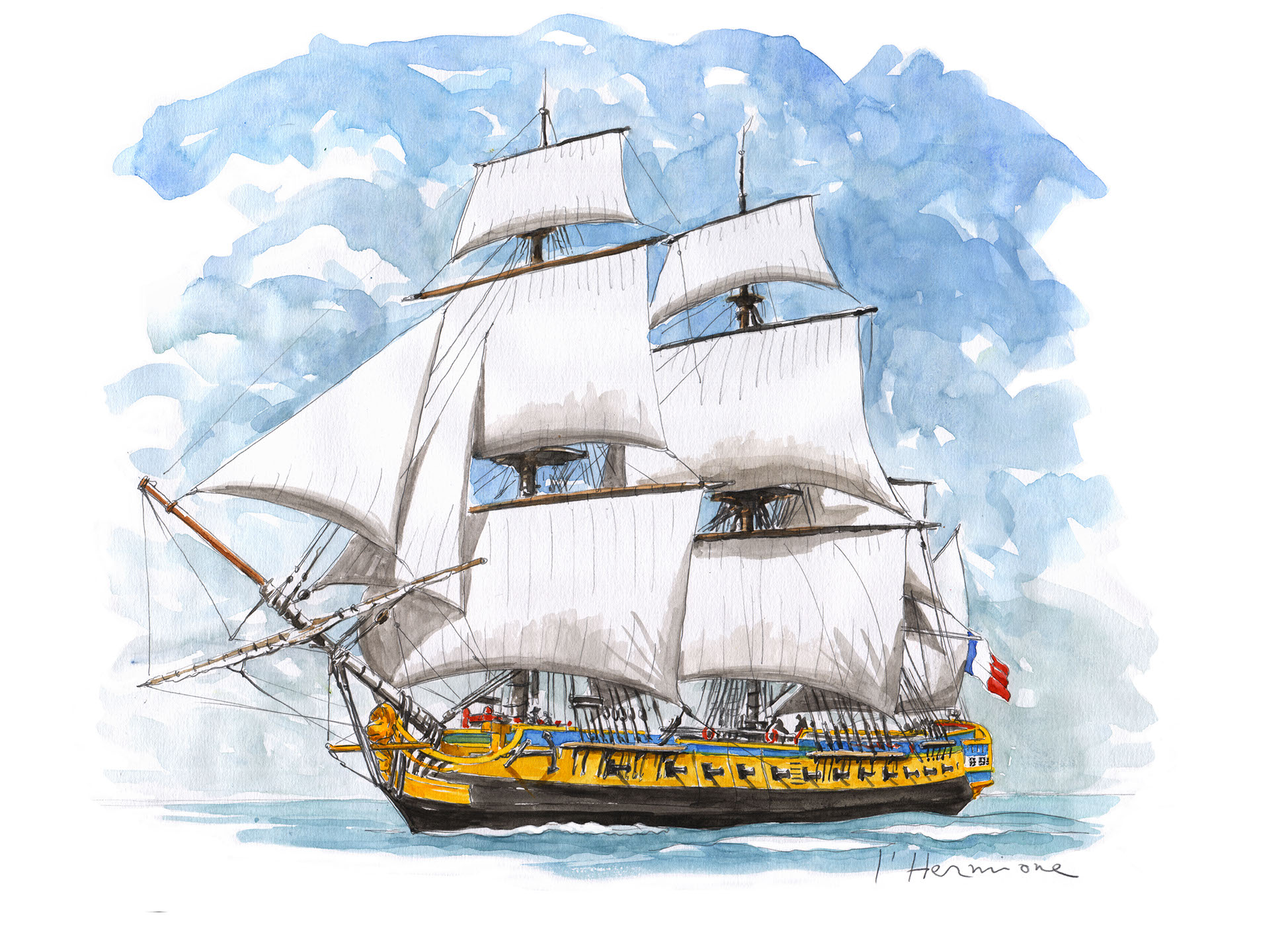 L'Hermione, la frégate de la liberté naviguant par beau temps.