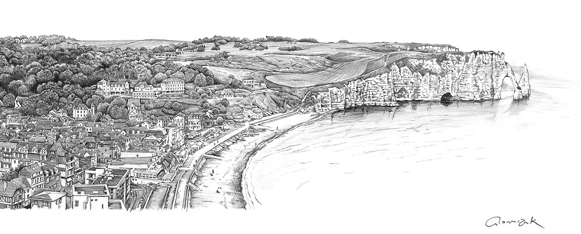 Étretat - Seine-Maritime. La ville, la plage, la falaise d'Aval.